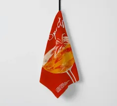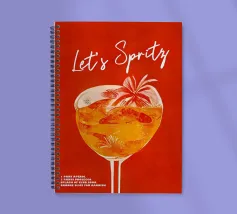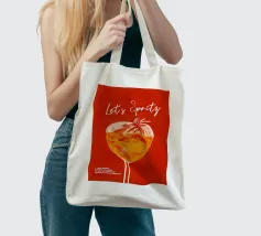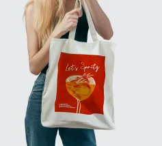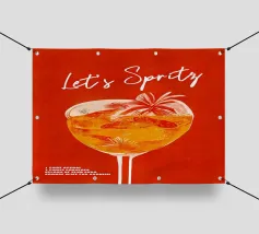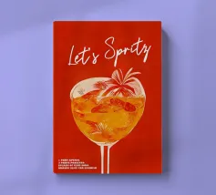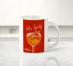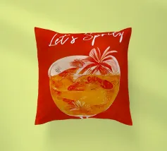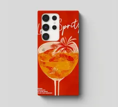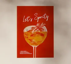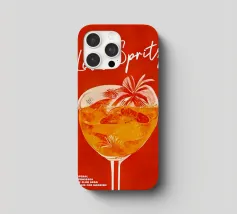 spritz Aperol prosecco cocktail fetta d'arancia cubetti di ghiaccio bevanda all'arancia bicchiere guarnizione bevanda testo ricetta della bevanda disegno floreale spruzzata di club soda testo bianco sfondo rosso celebrazione bevanda rinfrescante tema estivo bevanda per feste