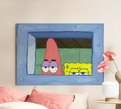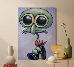 Uno Squidward stanco e annoiato che guarda fuori da una finestra, appoggiato al telaio con un'espressione spenta.