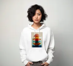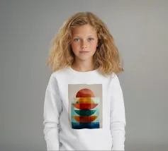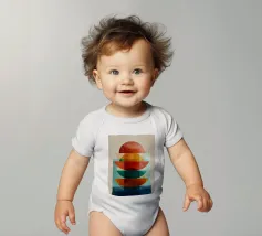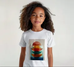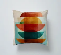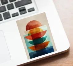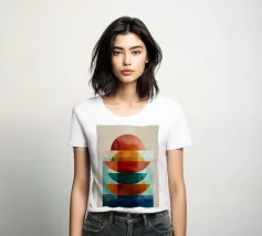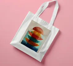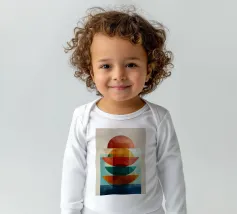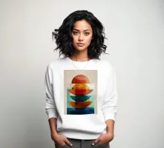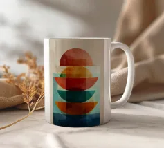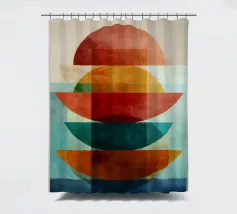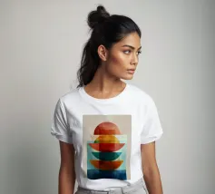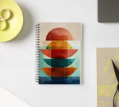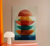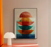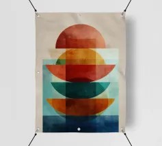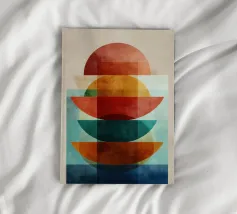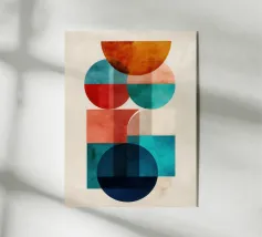 Una serena esplorazione della simmetria e dell'armonia dei colori. Quest'opera d'arte astratta e geometrica sovrappone forme semicircolari in ricche tonalità di terracotta, ocra, verde acqua e blu notte, simboleggiando equilibrio e unità. La composizione pulita e la calda palette minimalista evocano un'atmosfera moderna ma senza tempo, ideale per interni che abbracciano la semplicità, la struttura e la calma raffinatezza.