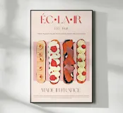Su uno sfondo neutro color crema, questa elegante illustrazione del famoso dolce eclairs aggiunge raffinatezza a qualsiasi cucina, bar o zona pranzo. Questo design minimalista ma informativo accenderà la conversazione in qualsiasi ambiente, aggiungendo un tocco raffinato al vostro ambiente.