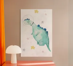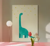 A gentle Diplodocus surrounded by twinkling stars, perfect for nurseries and kindergarten rooms.