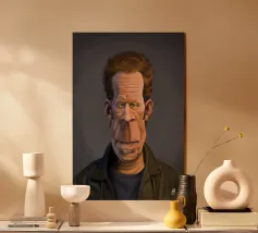 Illustrazione caricaturale umoristica del noto attore americano Steve Buscemi. Una delle caricature realizzate per la serie Celebrity Sunday, in cui un personaggio famoso viene ritratto in un giorno. L'idea è di mostrarli come in una fototessera per avere coerenza.