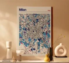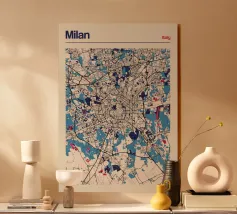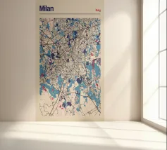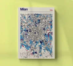 Scoprite lo stile impareggiabile di Milano con questa elegante opera d'arte cartografica! La rappresentazione dettagliata della città, con le sue strade simmetriche e gli accenti di colore vibranti, cattura perfettamente l'essenza della metropoli italiana della moda. Questo poster è un elemento di spicco per qualsiasi casa e un must per gli amanti di Milano e del design moderno.