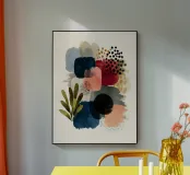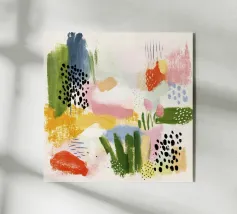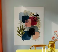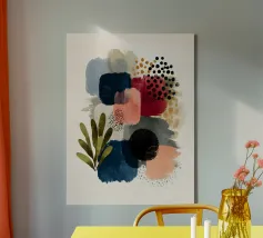 A soft abstract artwork combining painterly shapes with botanical elements. Calm, balanced, and organic, this piece brings a natural elegance into contemporary living spaces.