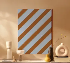 Strisce diagonali in azzurro e marrone chiaro.