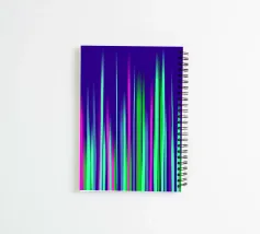 Design astratto e moderno con strisce verticali dinamiche di luce in intensi colori al neon su uno sfondo blu intenso. La composizione trasmette energia, movimento e un carattere contemporaneo e digitale.