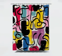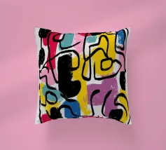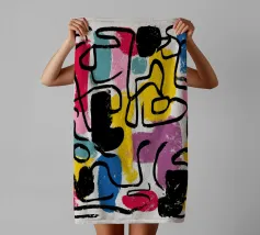 Una composizione astratta audace, costruita con spesse linee gestuali nere sovrapposte a vivaci blocchi di colore. Rosso saturo, blu elettrico, giallo sole, rosa tenue e verde acqua smorzato interagiscono all'interno di una griglia vagamente definita, creando una tensione dinamica tra struttura e spontaneità. Il tratto pesante e materico contrasta con i campi di colore piatti ma leggermente consumati, producendo profondità e movimento. Le forme si sovrappongono e si interrompono a vicenda, formando un dialogo visivo tra ordine e istinto. La composizione bilancia controllo ed espressione grezza, dando vita a un potente studio di ritmo, contrasto, a