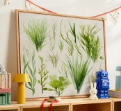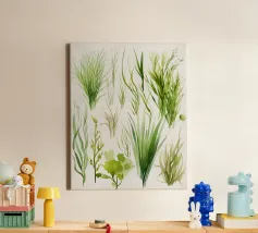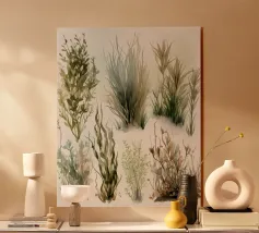 Un fresco studio ad acquerello di erbe selvatiche e fogliame in un ricco spettro di verdi, dal lime alla foresta. Ogni foglia e stelo è raffigurato con leggiadra fluidità, evidenziando la diversità e la vitalità del verde naturale. L'eleganza botanica di Sophia Calder risplende in questa composizione serena e piena di vita.
