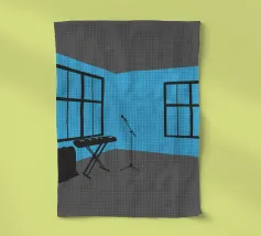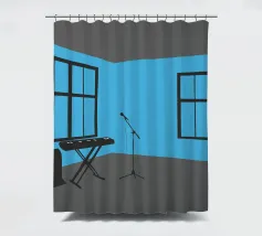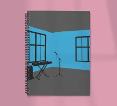 Design dello studio musicale che ottimizza l'acustica e l'ergonomia. Un layout efficiente e confortevole per la massima registrazione e produzione musicale.