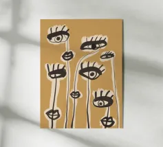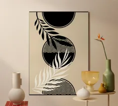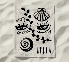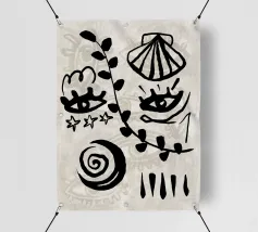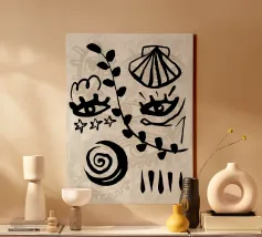 Immergetevi in "Summer Hues", dove un morbido sfondo beige incontra audaci pennellate nere, creando un contrasto sorprendente che cattura l'essenza dell'estate. L'opera d'arte presenta elementi astratti come un occhio, foglie, conchiglie e linee, ciascuno reso con tratti espressivi. Questo pezzo fonde semplicità e complessità, evocando il calore e la vivacità dell'estate attraverso un approccio minimalista ma dinamico.