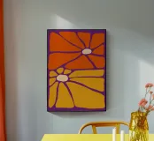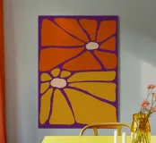 Ravvivate il vostro spazio con Sunburst Bloom, un sorprendente disegno floreale nei toni dell'arancione e del giallo solare. Questi fiori sovradimensionati irradiano gioia e calore, rendendoli ideali per soggiorni, camere da letto o studi creativi che necessitano di un tocco di colore e di energia vivace.