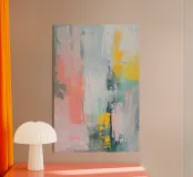 Ricca di luce e di emozioni, "Sunlit Abstraction" è una vibrante danza di corallo, giallo limone e verde acqua stratificata con pennellate espressive. Questa moderna composizione astratta ispirata all'olio trasmette un senso di calore e spontaneità, evocando l'eleganza giocosa di un'alba filtrata attraverso l'emozione della texture. Perfetta per illuminare gli interni contemporanei, questa stampa ad alta risoluzione porta a casa vostra un fascino da galleria.