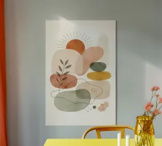 Questo poster è caratterizzato da un design chiaro e geometrico e da una combinazione di colori delicati. La combinazione di toni neutri come il beige, il grigio e il bianco crea un'estetica sobria. Il design segue l'approccio minimalista e utilizza forme semplici e molto spazio negativo, rendendolo adatto a spazi moderni di ispirazione scandinava.