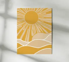 Questo design di tendenza per il tramonto cattura la bellezza calda e rilassante dell'ora d'oro in uno stile pulito e moderno. Morbidi gradienti e forme equilibrate creano un'atmosfera rilassata ma edificante, ispirata alle interminabili serate estive e agli orizzonti naturali. L'opera aggiunge calore e profondità a qualsiasi interno e si adatta perfettamente a soggiorni, camere da letto e spazi creativi. Perfetto per interni moderni, boho e minimalisti, questo poster con tramonto porta un senso di calma, evasione e stile senza sforzo alla vostra parete.