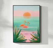 Sunset Bloom – Flamingos in a Blush Lagoon plexiglass