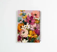 Vibranti petali magenta, senape e corallo si fondono in questo floreale pittorico ispirato al bagliore dell'ora d'oro. Un'opera audace e felice che irradia calore e creatività.