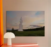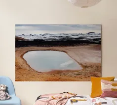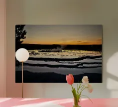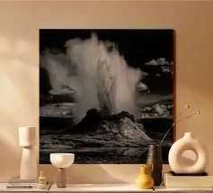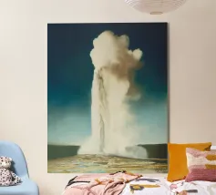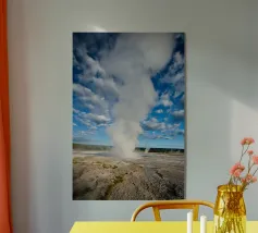 Un momento di cruda potenza geotermica incontra la serena bellezza di un tramonto nordico. Questa fotografia mozzafiato cattura un potente geyser mentre erutta, inviando un colossale pennacchio di vapore e acqua in un cielo dipinto con morbide tonalità pastello. Ambientato in un tranquillo prato di fiori selvatici, questo spettacolo impressionante è un tributo all'energia selvaggia e imprevedibile che si trova appena sotto la superficie terrestre. Un pezzo davvero magico e suggestivo, che porta lo spirito indomito dell'Islanda nella vostra casa.