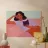 A woman reclines in an orange pink ambiance, absorbed in her book and glowing with comfort.