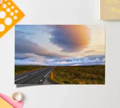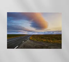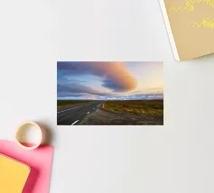 Fotografia della Ring Road in Islanda durante un suggestivo e colorato tramonto.