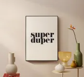 super duper, nero, bianco, tipografia, citazione, detto, divertente, ufficio, camera dei bambini, soggiorno, camera da letto, cucina, retrò
