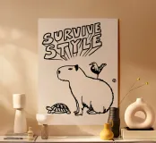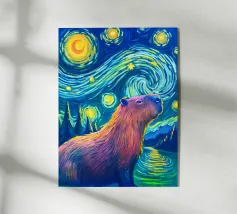 I capibara si distinguono per la loro natura calma e il loro buon umore con gli altri animali. Il disegno è accompagnato da un uccello e da una tartaruga, con una tipografia divertente che si abbina ai giorni.