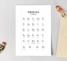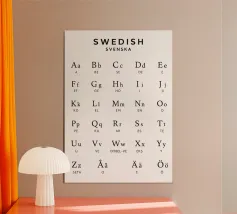 Scoprite la grazia dell'alfabeto svedese, catturata in un design audace ma morbido. Il lettering classico fa rivivere la tradizione, mentre le tonalità moderne mantengono la freschezza. Perfetto per gli amanti delle lingue, per gli appassionati di design nordico o per chiunque adori il minimalismo scandinavo.