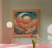Sole, luna e nuvole rosa-blu in un incantevole disegno Art Nouveau.