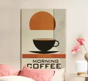 caffè tazza di caffè alba mattina sole tazza bevanda colazione bevanda calda sagoma piattino grafica ombra arancione nero bevanda design semplice testo texture rustica elemento grafico