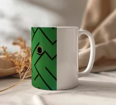 labirinto tazza da caffè tazza da tè sfondo verde linee nere labirinto manici di tazza ombre della tazza vista dall'alto design semplice motivo geometrico contrasto bevanda posizionamento della tazza layout astratto linee orizzontali linee verticali bevanda nera bevanda bianca spazio vuoto