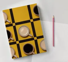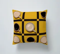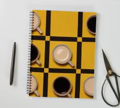 caffè tazze griglia linee nere sfondo giallo latte caffè scuro caffè chiaro disposizione tavola imbandita contrasto bevanda oggetti circolari tazze modelli monocromatico contrasto di colore arte concettuale simmetria organizzazione