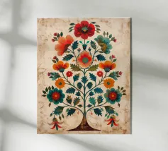 Vite dipinta a mano ad acquerello con fiori su sfondo beige