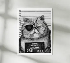 "American Thug" - Questo duro gattino con la bandana non è qui per fare il bravo! Direttamente da Whisker City, questa foto segnaletica felina ha carattere e fascino, perfetta per gli amanti dei gatti con una marcia in più. Mostrate il vostro lato ribelle con questo design audace e spiritoso!