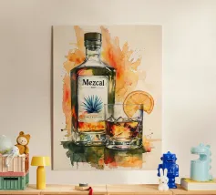 Sfondo rosa con tequila in bottiglia gialla e limone. Generato con AI (Canva).