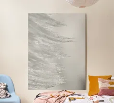 Questo motivo minimalista in delicate tonalità bianche colpisce per le sue strutture morbide e fluide che ricordano la luce che cade e il movimento. Il design emana calma ed eleganza, perfetto per gli spazi abitativi moderni. È perfetto su murales, cuscini o tende da doccia e dona un tocco di semplicità e stile a qualsiasi ambiente. Ideale per gli amanti dell'arte che si ispirano ai dettagli astratti.