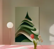Una miscela armoniosa di minimalismo astratto e fascino festivo, questa illustrazione stilizzata dell'albero di Natale utilizza texture stratificate ed eleganti toni verdi per evocare una tranquilla atmosfera invernale. Ideale per gli interni moderni, questo disegno porta il calore stagionale senza i cliché: un perfetto equilibrio tra tradizione e arte contemporanea.