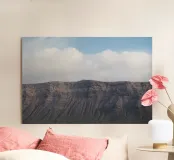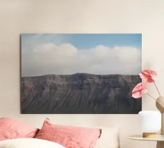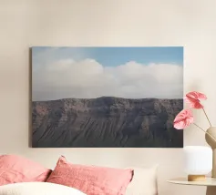 Un monumento scolpito dal tempo stesso. Questa potente fotografia cattura la bellezza maestosa di un'antica parete rocciosa che si erge verso un cielo morbido. La roccia frastagliata e cotta dal sole racconta una storia geologica immensa, con i suoi toni profondi e terrosi che creano un senso di forza e permanenza. È una profonda meditazione sulla bellezza grezza e minimalista del mondo naturale. Quest'opera d'arte, forte e contemplativa, porta in casa vostra lo spirito senza tempo della terra selvaggia e arida.
