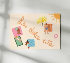 Portate le vibrazioni del sole in casa con la nostra stampa d'arte estiva "The Beach"! Questo vivace e divertente poster da spiaggia presenta un'illustrazione di persone vivaci, perfetta per ravvivare qualsiasi spazio. Ideale come regalo o come aggiunta giocosa all'arredamento della vostra casa, aggiungerà sicuramente un tocco di colore alle vostre pareti.