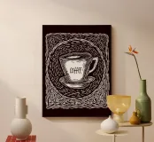 Questa suggestiva stampa d'arte in bianco e nero presenta un'illustrazione in stile linoleografico intagliata a mano di una tazza di caffè, che emana calore e fascino rustico. La parola "caffè" campeggia sulla tazza, circondata da linee vorticose e strutturate che evocano il comfort e il rituale di una tazza appena preparata. Con il suo contrasto deciso e il design tattile, quest'opera d'arte fonde le tecniche di stampa vintage con il minimalismo moderno, ideale per le cucine, i bar e gli angoli degli amanti del caffè. Un regalo perfetto per baristi, appassionati di caffè e amanti dello stile artigianale.