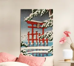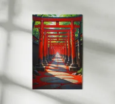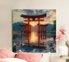 Sorgendo dalle acque del Mare Interno di Seto, il torii vermiglio di Miyajima sembra galleggiare - senza tempo, senza peso, sacro. Conosciuto come la Porta del Santuario di Itsukushima, accoglie il divino attraverso l'acqua e il vento. Questa immagine cattura la tranquilla dignità di uno dei luoghi più spirituali del Giappone, sospeso tra terra e cielo.