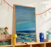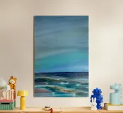 Questo paesaggio marino astratto cattura il movimento, la profondità e l'atmosfera dell'oceano in una forma moderna e senza tempo. Le strutture fluide e i colori sfumati ricordano l'acqua, il vento e la luce in continuo mutamento e trasmettono calma, vastità, nostalgia e libertà. L'immagine minimalista del mare crea un'atmosfera meditativa e si integra armoniosamente in spazi abitativi moderni, interni scandinavi o arredi minimalisti. Ideale per tutti coloro che amano l'arte astratta, i motivi marittimi e l'arte murale senza tempo.