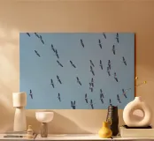 Un ritmo antico riecheggia in un cielo azzurro e limpido. Questa fotografia mozzafiato cattura un vasto stormo di gru durante la loro grande migrazione. Viaggiando insieme, una potente comunità che si muove come una sola, le loro forme aggraziate creano un disegno dinamico contro il blu infinito. Simbolo senza tempo di stagioni che cambiano, di viaggi che durano nel tempo e dell'istintivo richiamo della casa, quest'opera d'arte è una pura, edificante celebrazione della grandezza della natura. Porta sulle tue pareti lo spirito di libertà e la promessa di nuovi inizi.