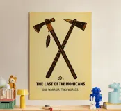 Stampa "L'ultimo dei Mohicani", Poster cinematografico alternativo, Arte murale minimale, Bianco e nero, Tomahawk, Ascia, Arma a mano, Cine, Regalo per gli appassionati di cinema