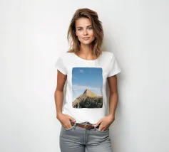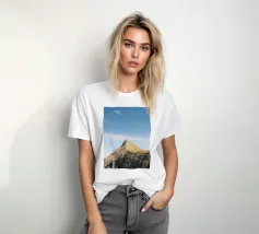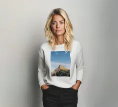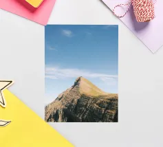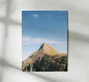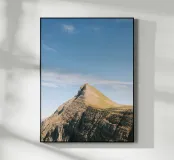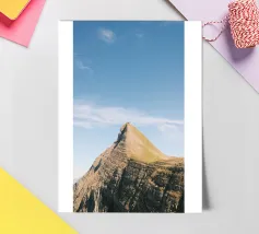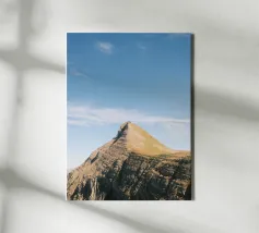 Una singola vetta montuosa che si erge alta, circondata da un cielo morbido e dalla bellezza alpina. Semplice, calmo e senza tempo, questo pezzo porta un tocco di fascino della natura nel vostro spazio.
