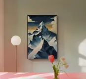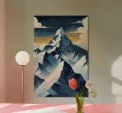 Questa rappresentazione artistica del Monte Everest mostra un sorprendente equilibrio di ombre profonde e luce radiosa. Il disegno geometrico astratto mette in risalto l'imponenza ghiacciata della vetta, trasmettendo al contempo la forza naturale che la modella. La composizione a strati cattura la maestosità dell'Everest in un modo moderno e senza tempo. Questo pezzo reinterpreta l'iconica montagna come una meraviglia fisica e un'opera d'arte.