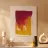 Vibrante opera d'arte astratta in rosa, giallo e arancione con accenni di blu.