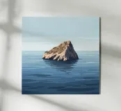 Nel mare vasto e tranquillo emerge un simbolo di forza duratura. Questa illustrazione grafica cattura la presenza monumentale di una pila marina solitaria, resa in una tavolozza fredda e rilassante di blu tenui e pietre terrose. È un potente tributo alla resilienza, alla perseveranza e alla forza tranquilla necessaria per affrontare qualsiasi tempesta. Presenza potente e al tempo stesso rasserenante, quest'opera d'arte conferisce un senso di fermezza e pace interiore a qualsiasi ambiente, rendendola un punto focale perfetto per un ufficio, uno studio o uno spazio abitativo.