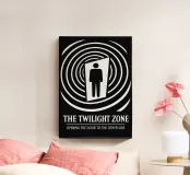 Stampa di The Twilight Zone, Quinta dimensione, Poster cinematografico alternativo, Arte murale minimale, Bianco e nero, Porta verso l'ignoto, Regalo per i fan del cinema