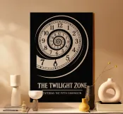 Stampa di The Twilight Zone, Paradosso temporale, Poster cinematografico alternativo, Arte da parete minimale, Bianco e nero, Orologio a spirale, Quinta dimensione, Regalo per i fan del cinema