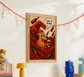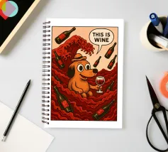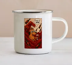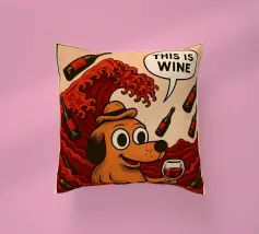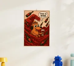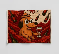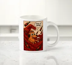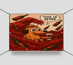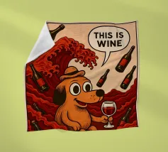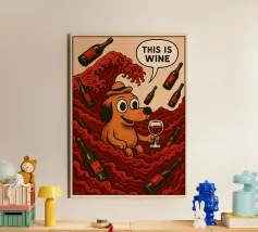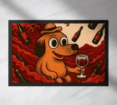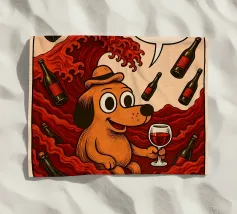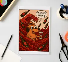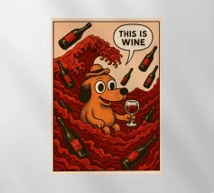 The iconic “This is fine” dog enjoys wine amid chaos in this Kanagawa wave-inspired comic. A perfect mix of alcohol, kitchen humor, and vintage cartoon style. This funny painting is trending for a reason — ideal for fans of wine, memes, and art.