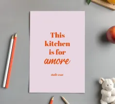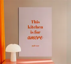 Un poster romantico per la cucina che unisce amore e divertimento. La cucina come espressione di passione e calore.